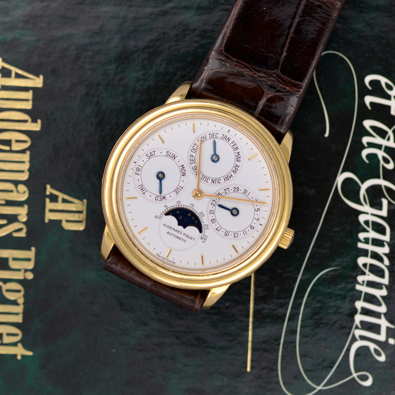 1983 Audemars Piguet Calendar 18k Yellow Gold White "Enamel" Dial 25573 BA with extract