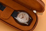 This watch has been designed with the essence of a rare vintage watch considered as NOS -New Old Stock- as it left the factory without being sold and/or worn. With an "Anonymous" dial -no brand- that reminds our beloved community of the watches made by students of the École d'horlogerie to pass their certificates and graduate. This watch is a dream come true as I've always wanted to combine all these great influences together in a watch that I would enjoy wearing every single day.