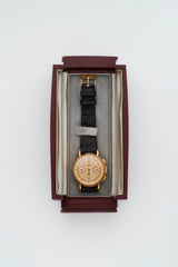 The 1950s Vacheron Constantin Chronograph reference 4178 is widely regarded as one of the maison’s most iconic and beautifully executed vintage chronographs. Crafted in 18k yellow gold, the case is distinguished by its elegant teardrop lugs—an immediately recognizable hallmark of this reference—paired with harmonious mid-century proportions. The silvered dial presents a classic two-register chronograph layout, featuring a tachymeter scale at the periphery and finely detailed subdials that highlight Vacheron’s commitment to balance and legibility. Inside beats the manually wound caliber 492, a robust and meticulously finished movement that underlines the watch’s technical excellence. Produced in relatively small numbers, the 4178 combines mechanical sophistication with timeless aesthetics, making it one of the most collectible vintage chronographs of its era and a shining example of Vacheron Constantin’s artistry in the golden age of watchmaking.