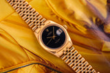 An extremely rare and very desirable 1968 Rolex Oyster Perpetual Datejust in 18k yellow gold reference 1601 with a crazy rare "Obsidian" dial in perfect condition, no cracks and no hairlines displaying a marvelous charcoal pattern. Black Obsidian - also known as volcanic glass - is formed from molten lava that has cooled very quickly. Directly from a volcano, black obsidian is unique and combines the elements of earth, water and fire. However after recent investigations on these "Obsidian" dials, it would appear that these are in fact Tropical Onyx dials. The watch is in excellent condition showing light signs of age and or scratches and no stretch on the bracelet. All watches are checked by our watchmaker and guaranteed 3 months, 1 year if serviced. This reference has been serviced and is mechanically guaranteed 1 year.