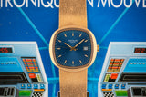 1970s Patek Philippe Beta21 18k Yellow Gold Blue Dial 3587/1 with Extract from the Archives
