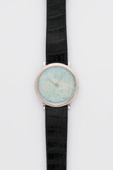 Housed in a slender 31mm case crafted from 18k white gold, this watch epitomizes the understated luxury for which Piaget became renowned during the era. The true highlight is its opal dial — a rare and mesmerizing choice — shimmering with iridescent hues that change beautifully under the light, adding a touch of ethereal charm to its clean, time-only layout. Powered by a manual-wind ultra-thin movement, this reference reflects Piaget’s mastery in crafting slim, high-precision calibers, a specialty that helped cement the brand’s reputation as a leader in elegant dress watches. With its blend of rare materials, impeccable craftsmanship, and refined proportions, the Altiplano remains a sought-after collector’s piece and a timeless emblem of 1970s haute horlogerie.