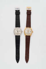 The 1972 Rolex Oyster Perpetual Day-Date reference 1803 in 18k yellow gold is a quintessential expression of Rolex’s flagship model and one of the most recognizable luxury watches of the 20th century. Its warm, solid gold case paired with a classic silver dial creates a refined yet commanding presence, perfectly suited to the model famously known as the “President’s Watch.” Featuring the hallmark day display at 12 o’clock and date window at 3 o’clock, the watch is powered by the robust caliber 1556 automatic movement, celebrated for its reliability and precision. The fluted bezel and matching gold Oyster or President bracelet further underscore its timeless elegance. As an early 1970s example, this 1803 embodies the enduring appeal of the Day-Date—an icon of prestige and sophistication that remains as desirable today as it was when it left the Rolex workshops over half a century ago.