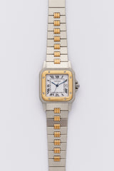 An unpolished condition 1980s Cartier Santos in both 18k yellow gold and stainless steel with a perfect white roman service dial paired with its original "Godron" type bracelet.