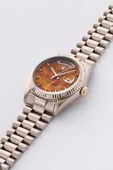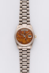 1982 Rolex Oyster Perpetual Day-Date 18k White Gold "Burl" Wood Dial 18039