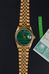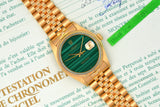 1983 Rolex Oyster Perpetual Datejust 18k Yellow Gold "Malachite" Dial 16018 with LC100 Wempe Papers