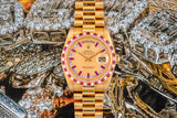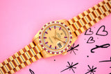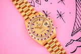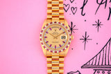 1983 Rolex Oyster Perpetual Day-Date 18k Yellow Gold Ruby "Baguette" string dial 18148