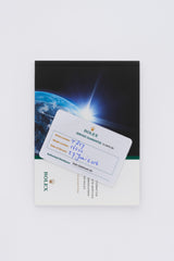 Adding to its desirability is the original green sticker on the case back, which Rolex affixed to new watches during this period. This sticker, often removed over time, indicates that the watch has been carefully preserved by its previous owner. Additionally, the watch includes a 2016 Rolex service card and booklet, providing official service history and increasing confidence in the watch's authenticity.