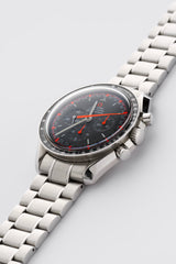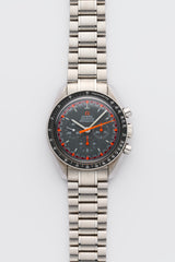 The 2004 Omega Speedmaster Professional Japan Racing reference 3570.40.00 is a highly sought-after limited edition timepiece, celebrated for its bold aesthetics and connection to Omega's rich racing heritage. Produced exclusively for the Japanese market in a limited run, this model stands out with its striking grey dial, vivid orange chronograph hands, and contrasting racing-style minute track—an homage to the original 1969 Speedmaster “Racing” dial. Housed in the classic 42mm stainless steel Moonwatch case, it features the hand-wound Caliber 1861 movement, the same robust mechanism used in Speedmasters worn during NASA missions. Its rarity, iconic design, and historical significance make it a prized piece in any serious Speedmaster collection. This example is accompanied by its original box and original papers.